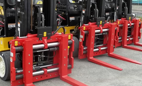 調距叉廣泛應用于第三方物流。裝卸時搬運各種托盤、盒子、籠子和空運集裝箱,負載貨物的尺寸變化較大。叉車租賃車隊必須全天候進行多種工況的應用。